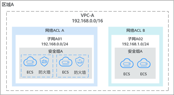 - 网络ACL对整个子网进行防护,将子网关联至网络ACL,则子网内的所有实例都会受到网络ACL保护。