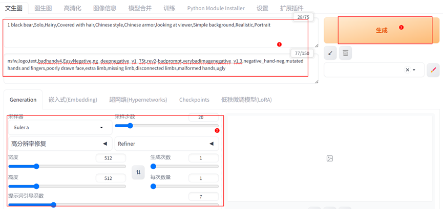 (2)输入提示词:输入正反向提示词,设置参数,每次数量可选多张。。