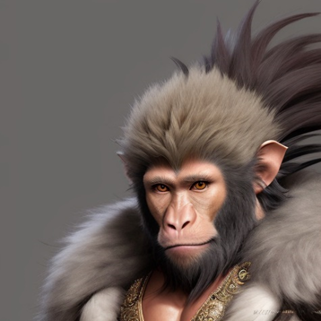 孙悟空:wukong,monkey king,dark grey hair,Solo,Hairy,Covered with hair,Chinese style,Chinese armor,Simple background,Realistic