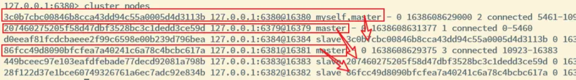 3c0b7cbc00846b8cca43dd94c55a0005d4d3113b 127.0.0.1:6380@16380 myself,master - 0 1638608629000 2 connected 5461-10922