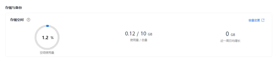 除此之外,还可以通过单击目标实例名称,进入“基本信息”页面。在“存储/备份空间”模块,单击“容量变更”,进入“容量变更”页面。