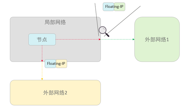 当一台电脑持有这个“Floating-IP”时,它(这台电脑)访问外部网络时,别人(其他电脑)看到的都是这个“Floating-IP”发出的。且外部访问这个“Floating-IP”就等于是直接访问这台电脑。即:当前Floating-IP代表了这台电脑。