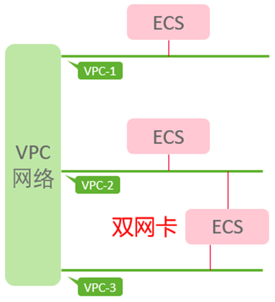 (1)可以实现VPC共享给其他租户,然后通过双网卡方式,就可以实现连通2个VPC。