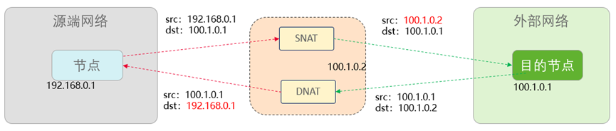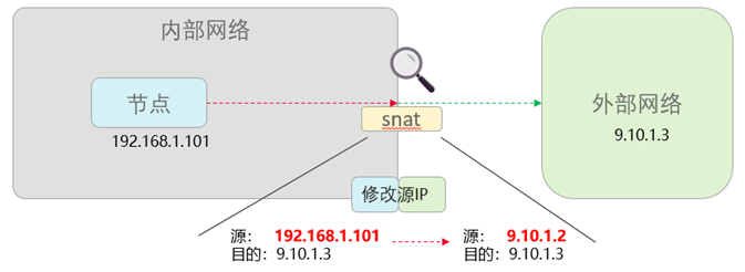 SNAT(Source Network Address Translation)看名字就知道了,发出去报文的时候,把源IP地址换掉。