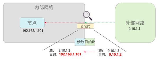 DNAT(Destination Network Address Translation)则相反,收到报文的时候,把目的IP地址换掉。