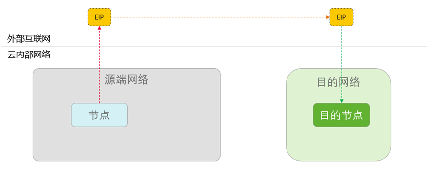如上图这种情况下,双方通信时,都跟对方的EIP通信。