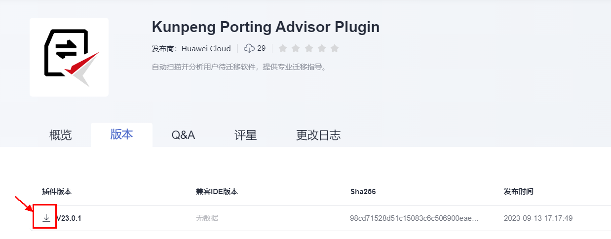 前往鲲鹏社区官网下载插件Kunpeng Porting Advisor Plugin到云主机,下载地址为:CodeArts IDE插件市场 。