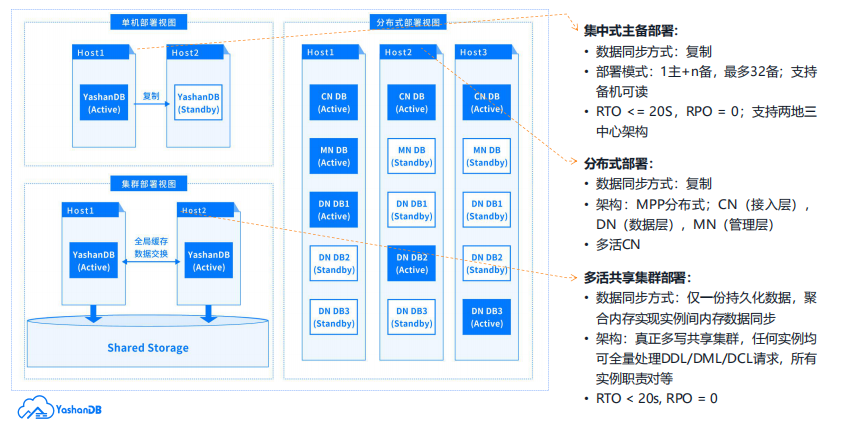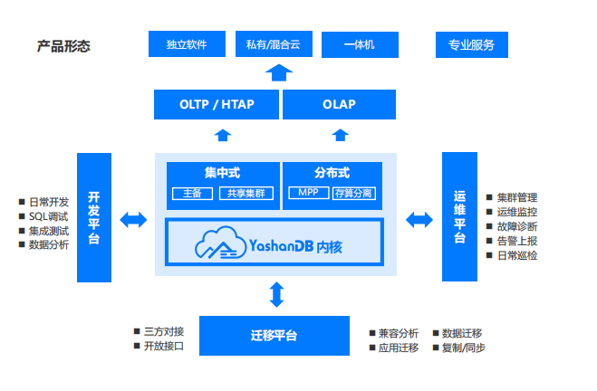 YashanDB提供了多种产品形态和部署方式,以满足不同用户的需求。它支持集中式主备部署和分布式部署,可以根据业务场景和性能需求进行灵活选择。同时,YashanDB还提供了独立软件、私有/混合云和一体机等多种产品形态,方便用户进行部署和管理。
