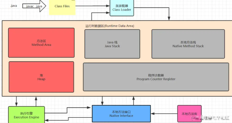 本地方法栈中登记native修饰的方法,由执行引擎来加载本地方法库