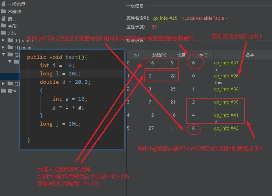 槽的复用:如果PC指令申明局部变量(j)已经超过了某个局部变量(a)的作用域,那么j就会复用a的slot