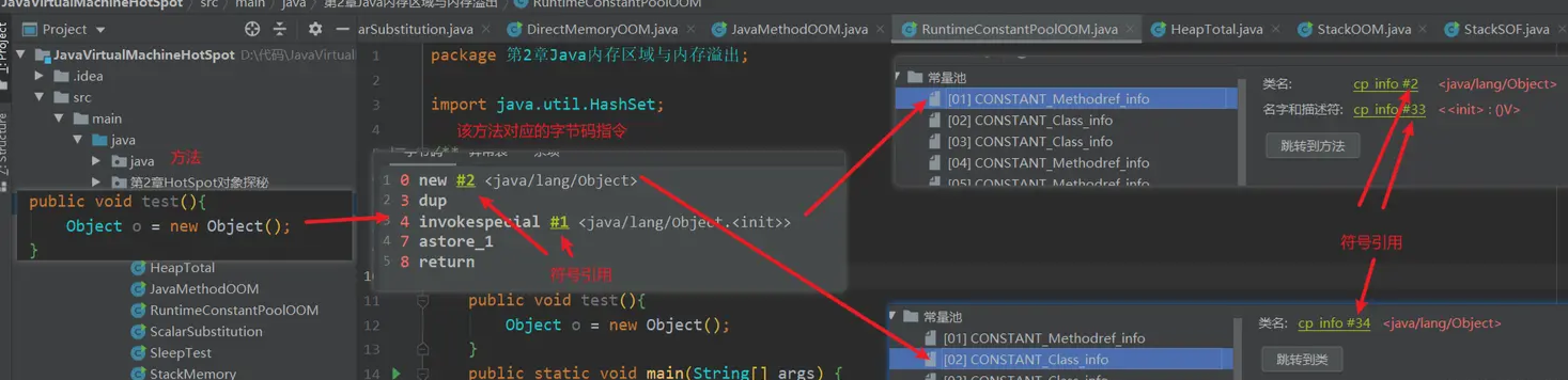 符号引用:#xx 会指向常量池中的一个直接引用(比如类引用Object)