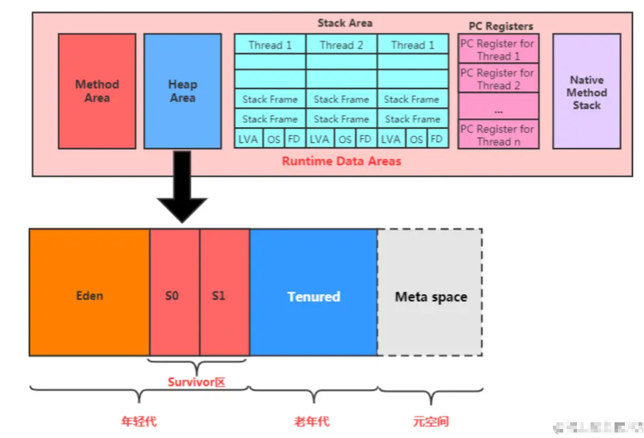 Java虚拟机在运行Java程序时,把所管理的内存分为多个区域, 这些区域就是运行时数据区