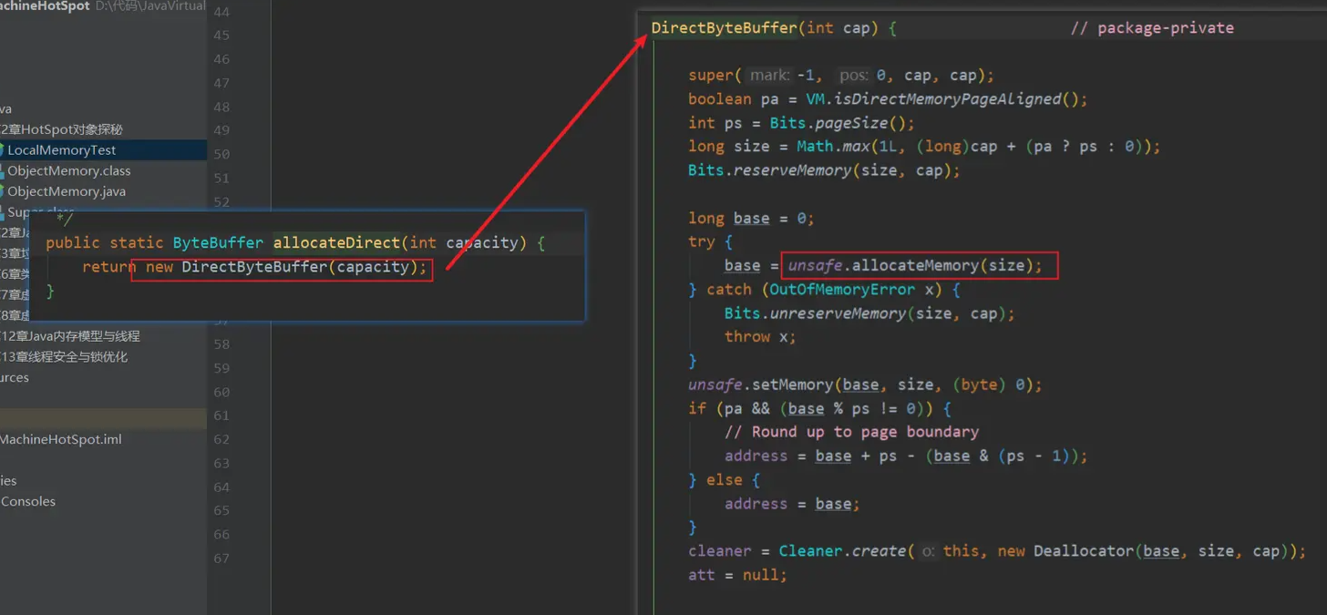 真正申请分配直接内存的方法是Unsafe::allocateMemory()