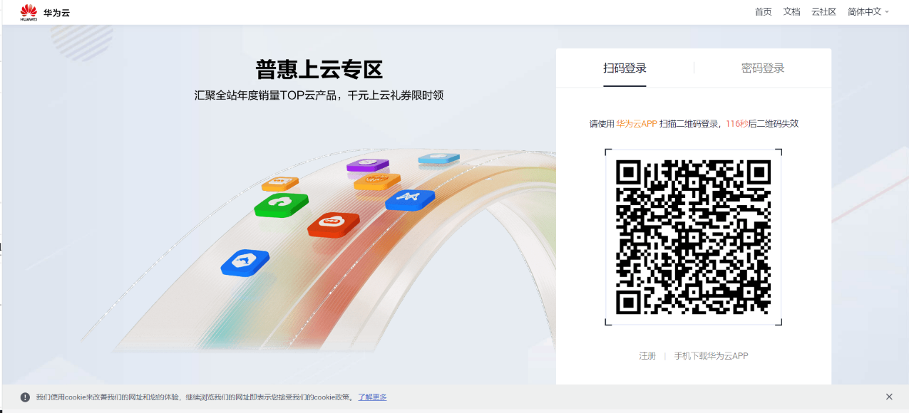 登录方式1:通过华为云APP扫描登录,如下图: