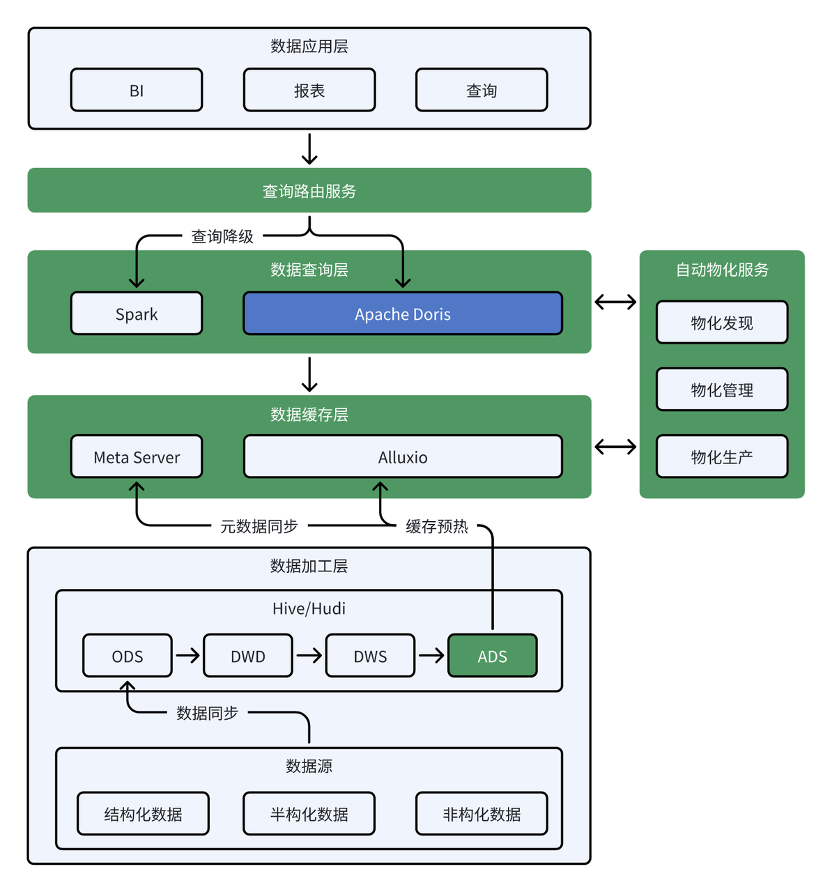 数据查询层:基于 Apache Doris 提供对 ADS 层数据的高性能查询服务。