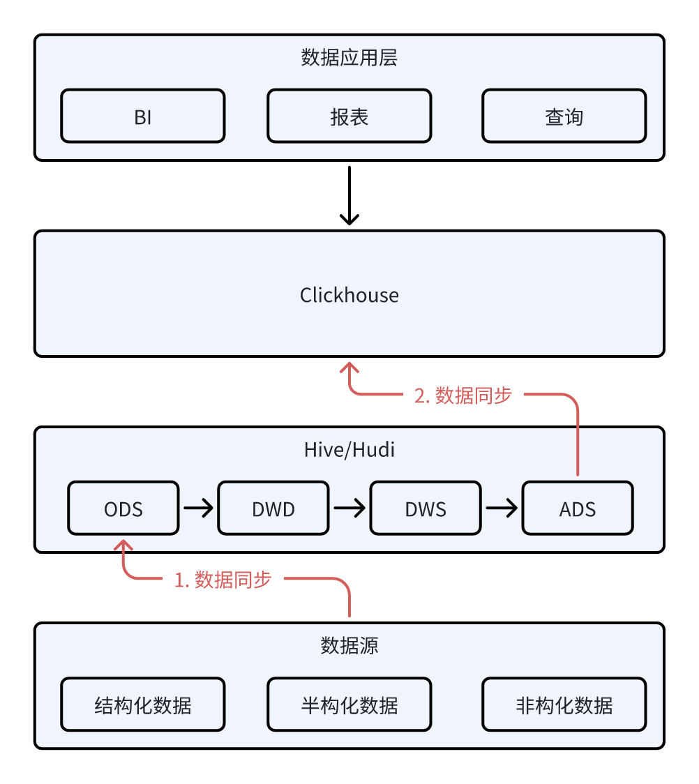 - 冗余存储:虽然将数据入仓到 ClickHouse 能够提高查询性能,但同时导致了数据冗余存储,影响数据就绪时间和存储效率。