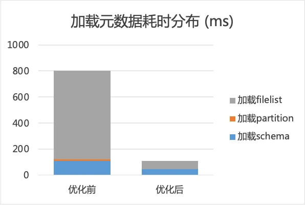 通过元数据缓存,与直接从 Hive Metastore 和 HDFS 中获取相比,平均耗时由 800 毫秒降低至约 50 毫秒 ,并且查询耗时并未出现较大波动。