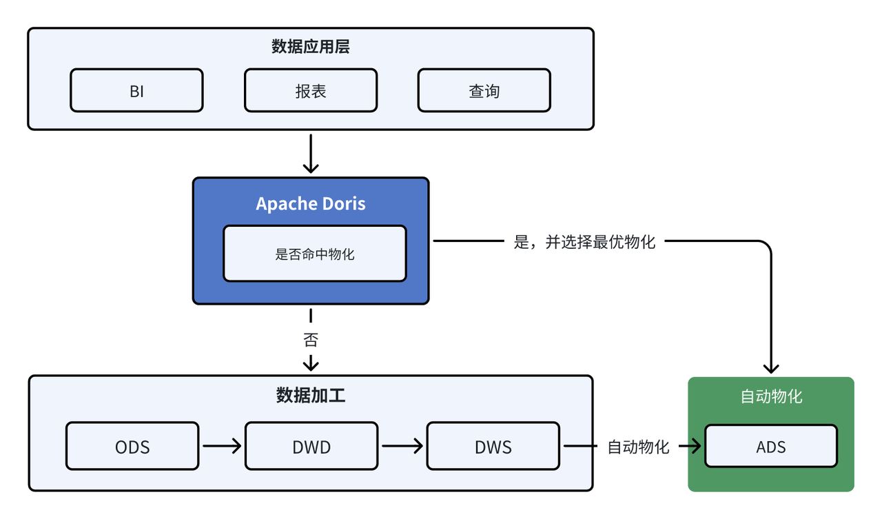 - 充分利用 Doris 优化器的视图改写能力,实现灵活的查询改写功能。
