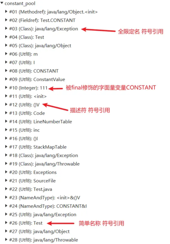 常量池包含两大常量: 字面量和符号引用