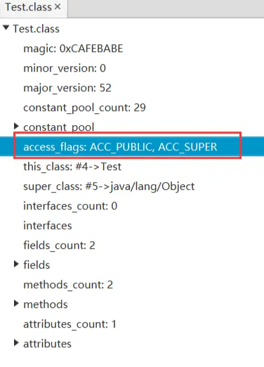 | u2 | access_flags | 1 | 访问标志 | 识别类(类,接口)的访问信息 |