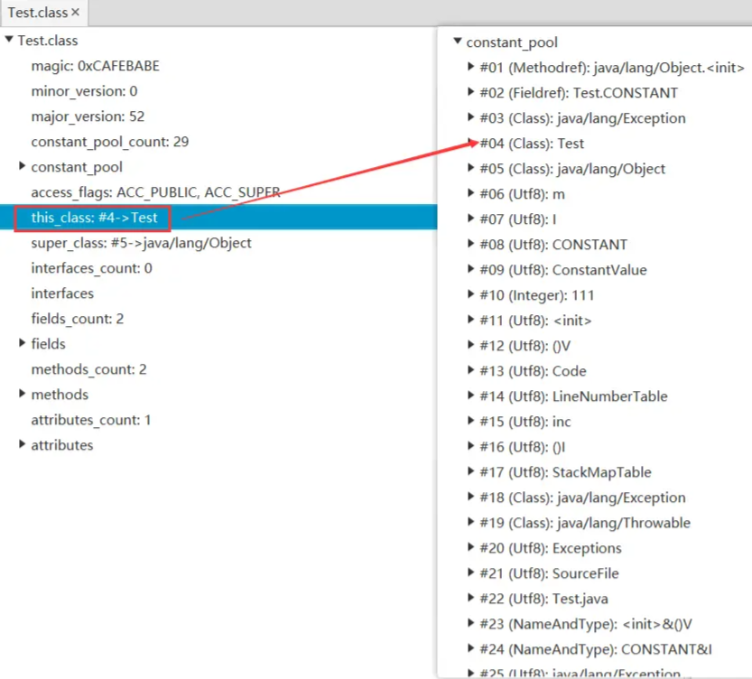 类索引指向常量池中表示该类的符号引用