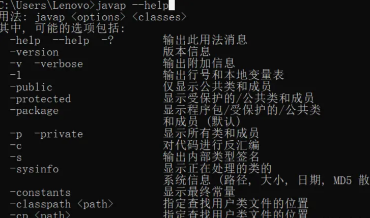 但是它不会显示私有字段或方法的信息,所以可以使用javap -v -p