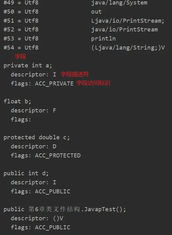 因此Class文件中字段描述符指向常量池中的#07 I 符号引用(的索引)