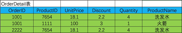 同时 UnitPrice 和 ProductName 这里两个字段 与ProductID的从属关系强于他们同OrderID的从属关系