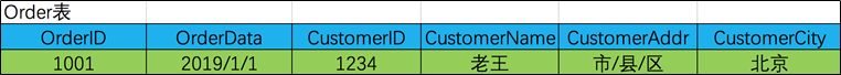 把【Order】表拆分为【Order】(OrderID,OrderDate,CustomerID)和【Customer】(CustomerID,CustomerName,CustomerAddr,CustomerCity)从而达到 3NF。