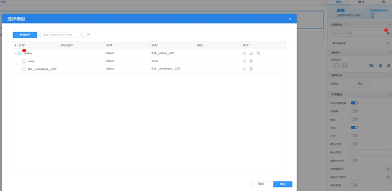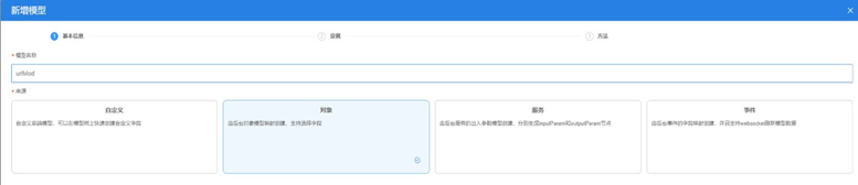 (2)单击“新增模型”,输入模型名称、“来源”选择“对象”,单击“下一步”。