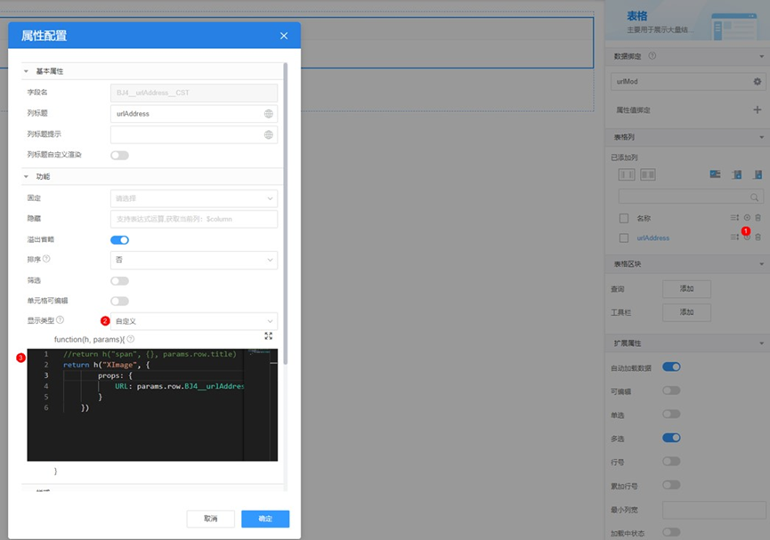 5.选中表格,在“属性 > 表格列 > 已添加列”中,单击待显示图片列后的