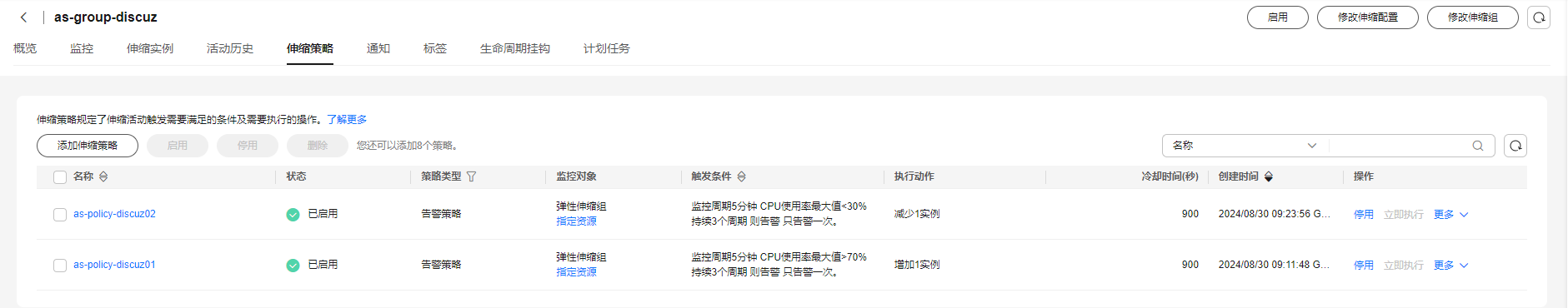 单击伸缩组as-group-discuz名称进入伸缩组详情页面。