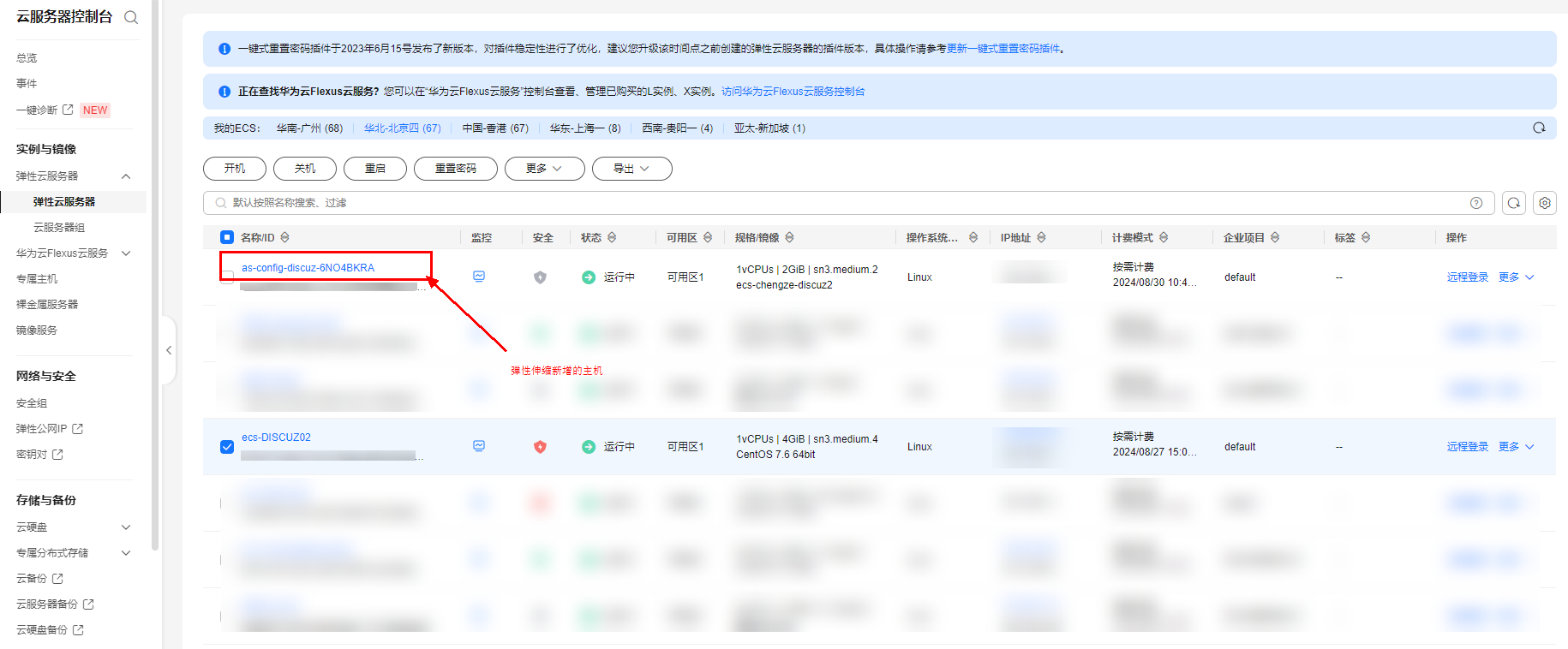 3、触发伸缩策略的增加/缩减服务器场景,使资源自动伸缩增加一台;