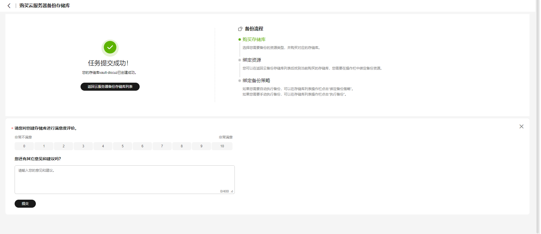 点击右上角的“购买云服务器备份存储库”,参考下面的配置进行云备份配置。