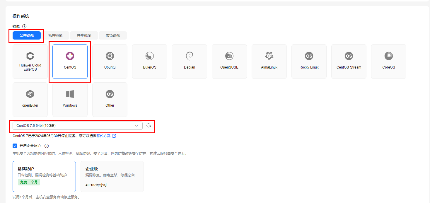 公共镜像-CentOS-centOS7.6(本实验是基于Centos系统实现的,如因Centos下线停止更新导致对后续实验环境有要求的用户可以参考Centos停止维护解决方案 解决。 |