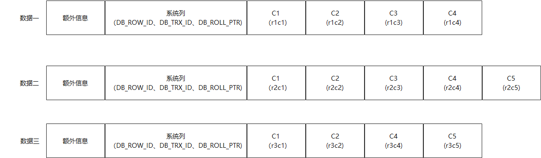 原有列变化(DB_ROLL_PTR、DB_ROW_ID、DB_TRX_ID、C1、C2、C3、C4)