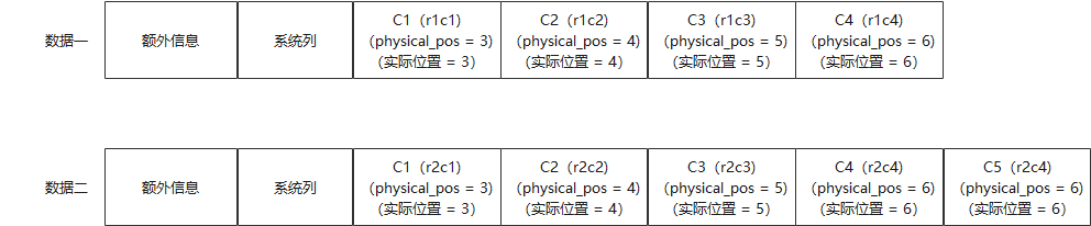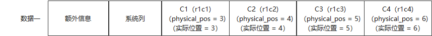 可以看到数据三C4列的physical_pos值为6,但是因为数据三中没有C3列的数据,所以,C4列数据实际在位置5。这说明physical_pos记录的是相对物理位置,要结合其他元信息才能确定该record中列的具体物理分布情况。