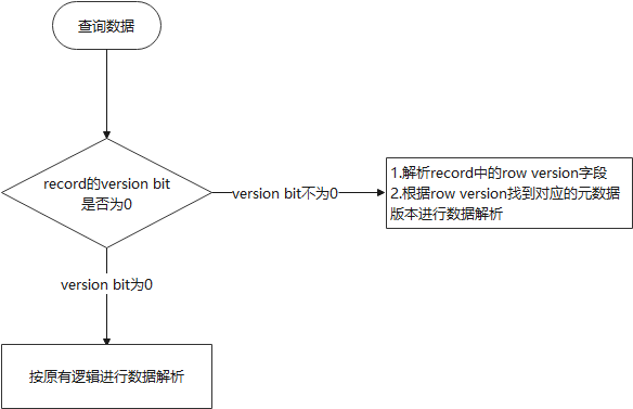 • 表VERSION不为0时,此时插入的record的version bit为1;
