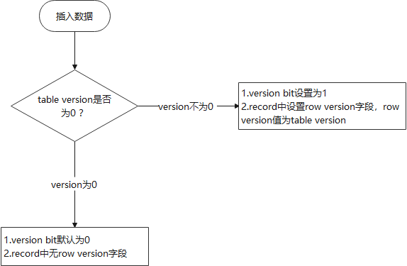 • 表VERSION为0时,此时插入的record的version bit为0;