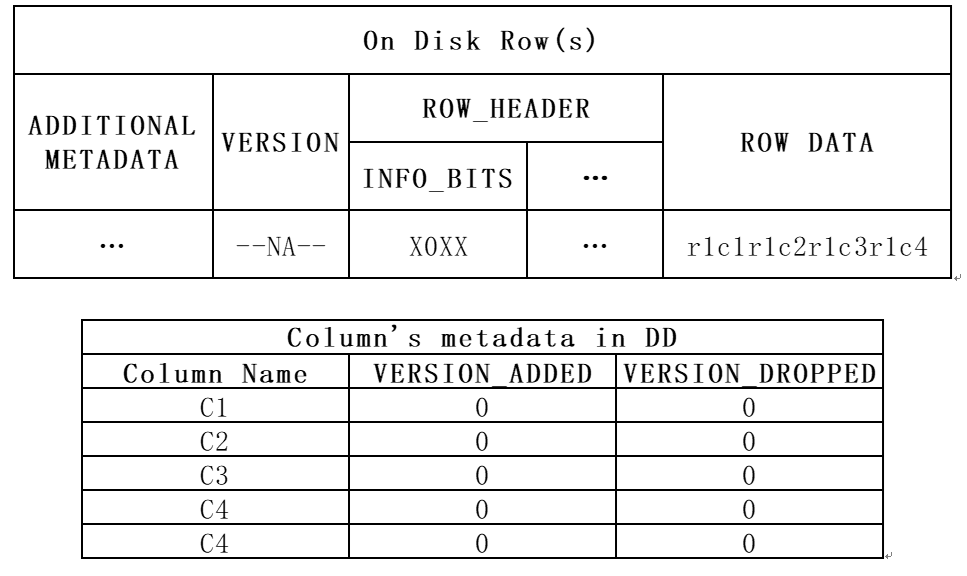 • 表VERSION为0时,此时插入的record没有ROW VERSION字段;