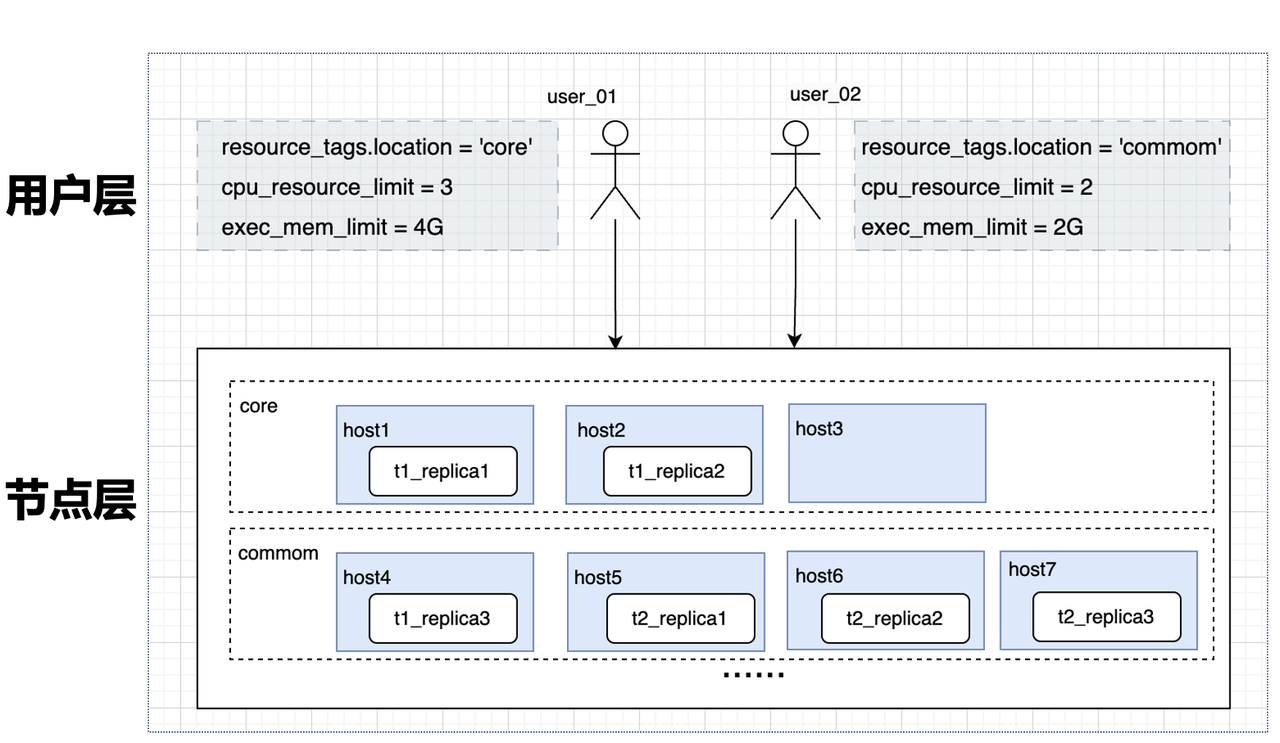- 第一层:物理隔离(Resource Group) 将集群划分为两个资源组:Core 和 Common,以服务不同重要场景的需求。Core 组专注于内容搜索和标签圈选的核心需求,而 Common 组则处理其他普通需求。通过在节点层面实施物理隔离,可确保核心业务不受其他业务的影响。