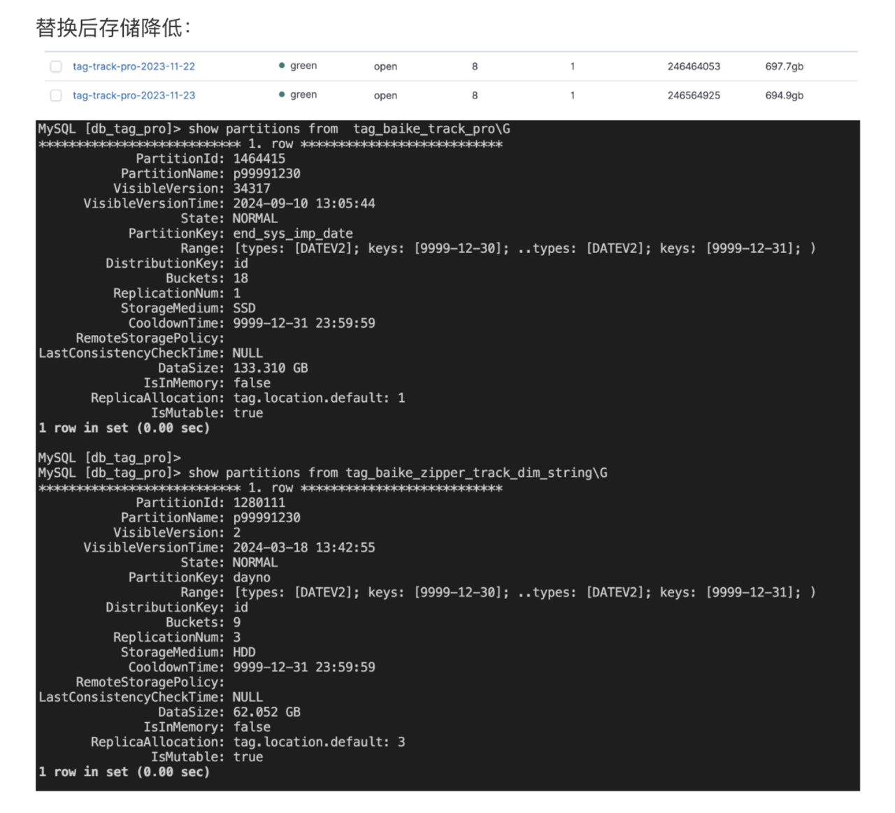 - 存储成本较高:Doris 的引入并没有完全解决存储成本高的问题,Elasticsearch 的存储空间占用仍然显著。
