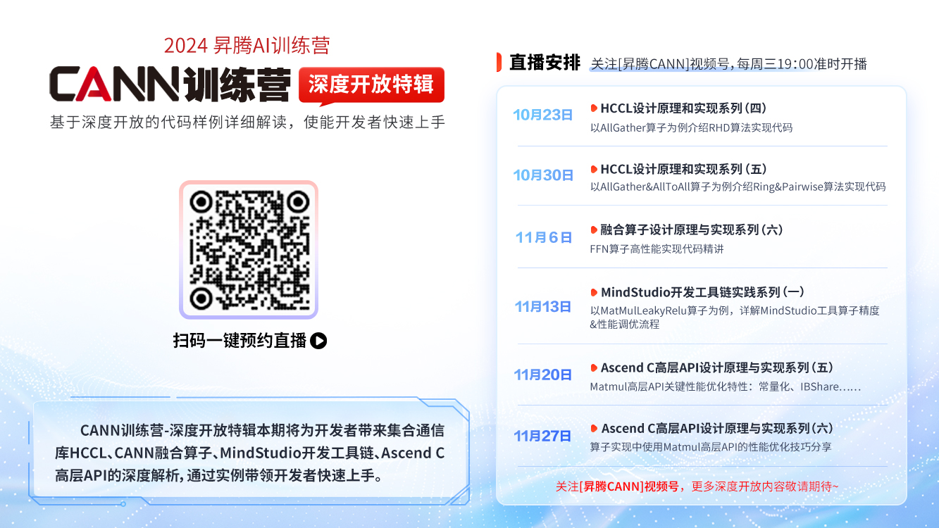 关注【昇腾CANN】视频号快速预约直播,B站和昇腾社区同步观看~