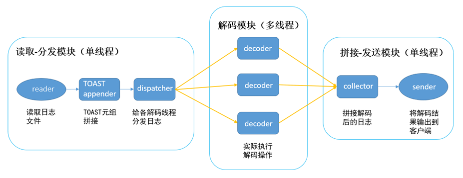 如上图所示,并行逻辑解码包含三类线程: