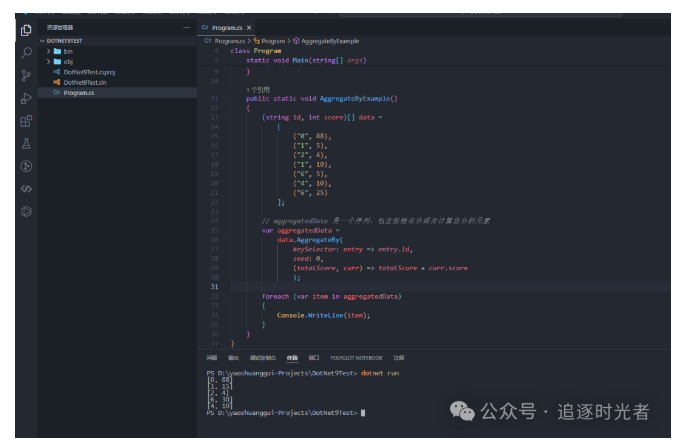 AggregateBy这个方法提供了更强大的聚合功能。开发者可以定义一个聚合逻辑(如求和、平均值等),并按键进行聚合。该方法在需要基于键对集合中的元素进行复杂计算时非常有用。