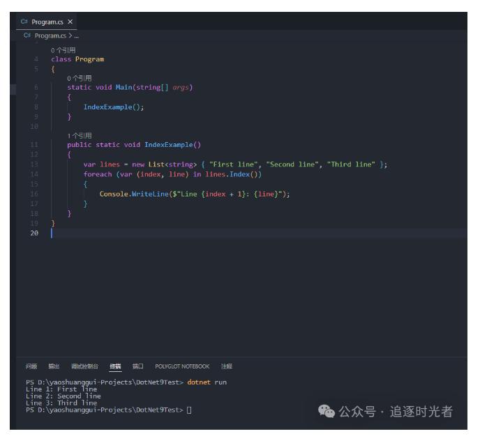 借助 Index<TSource>(IEnumerable<TSource>),可以快速提取可枚举项的隐式索引。现在,可以编写代码(如以下代码片段)来自动为集合中的项编制索引。