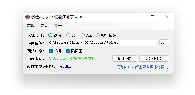 一款.NET开源的适用于 Windows 下 PC 版微信/QQ/TIM的防撤回补丁