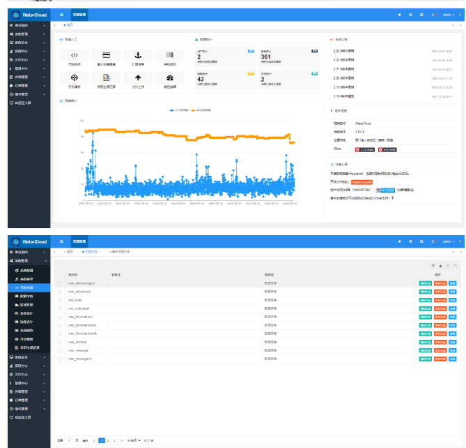 WaterCloud适用于开发各类管理软件,如OA、ERP、BPM、CRM、WMS、TMS、MIS、BI、电商平台后台、物流管理系统、快递管理系统、教务管理系统等。