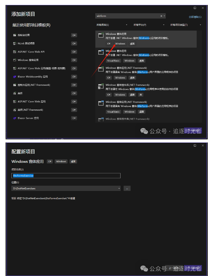 创建一个名为:EtoFormsExercise的WinForms应用:
