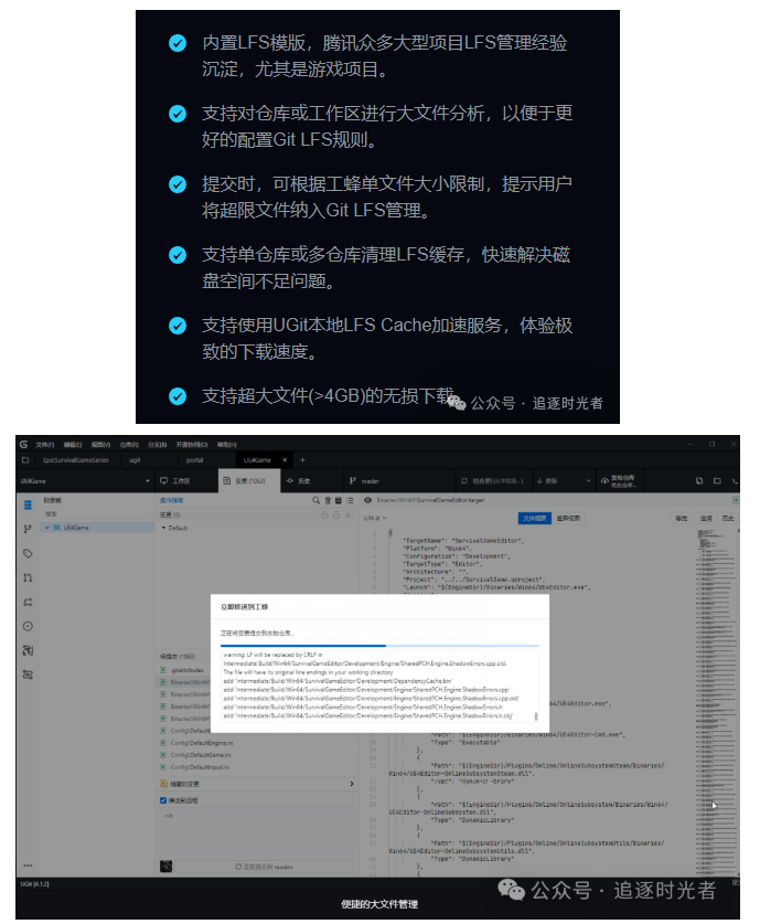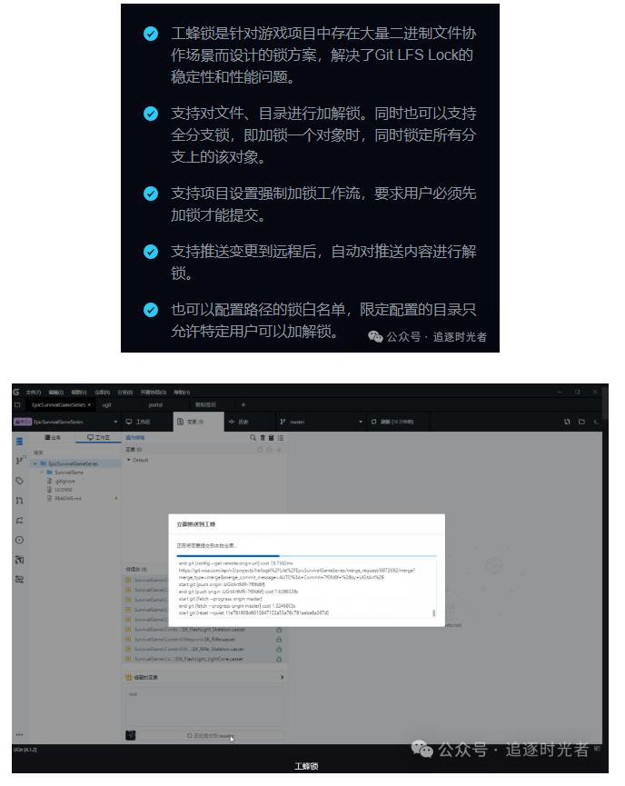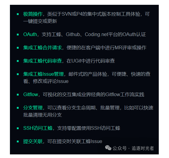 【摘要】 工具介绍UGit是一款腾讯自研的Git客户端,为了让每个人都可以轻松使用Git,从而提高开发效率和团队协作的流畅性。支持工蜂MR/CR,工蜂议题管理,另外对于Git的原生特性有着深度支持。支持的系统支持macOS 10.11+、Apple Silicon和Win64位系统。核心功能介绍便捷的大文件管理快速提交采用原生 Git 提交流程的优化版本。当远程有新提交时,传统 Git 要求先更新再提...